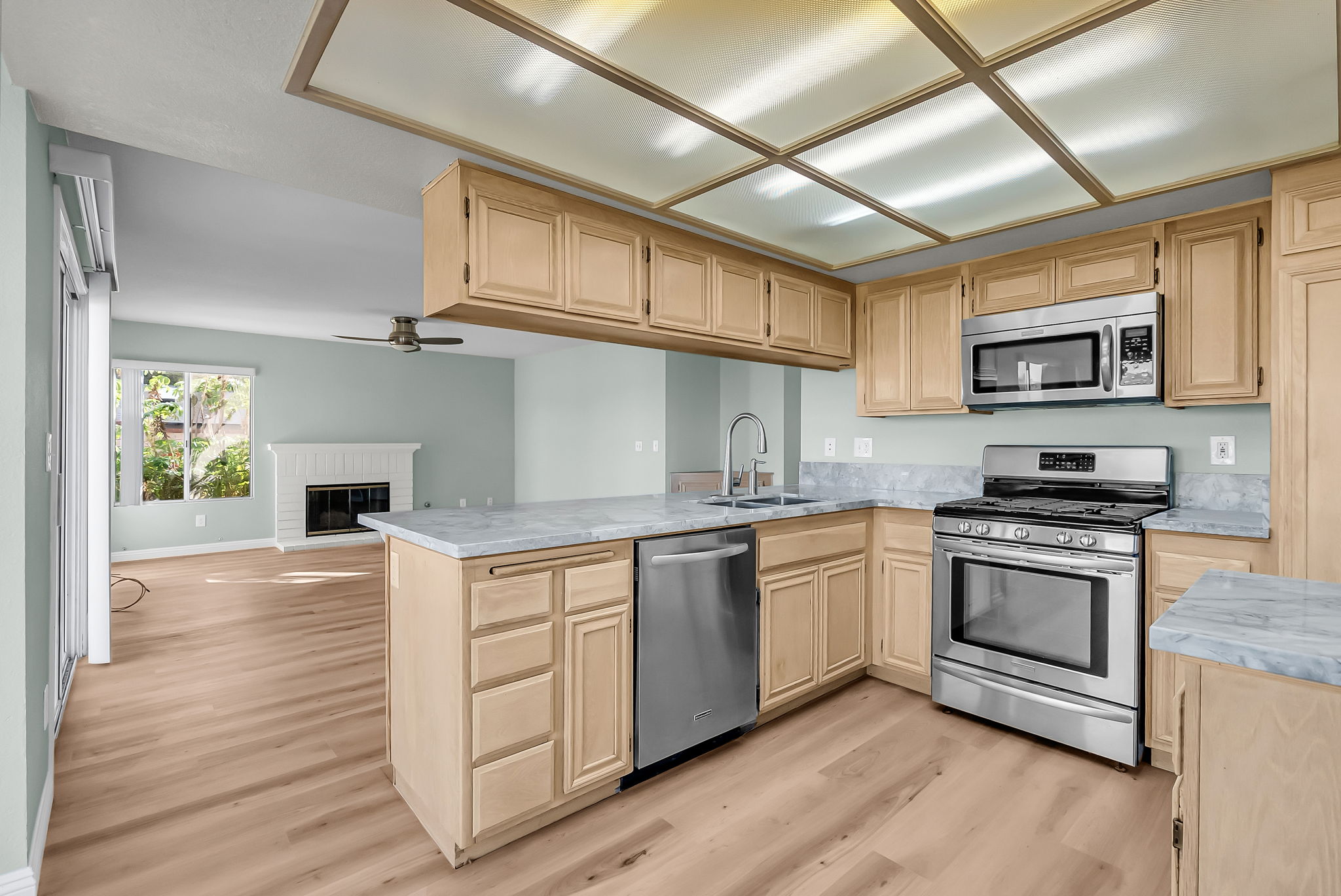 Besides the modern flooring features and elegant marble kitchen countertops, the kitchen is equipped with high-end stainless steel KitchenAid appliances and the home includes a new energy-efficient central AC/heating system.